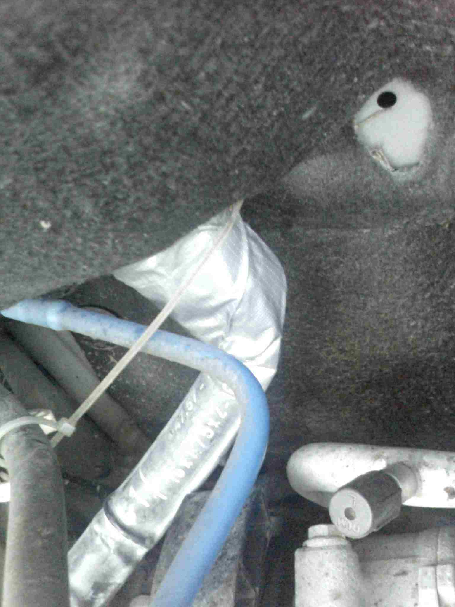 И так. На днях доработал слив воды, в принципе как это делать очень популярно уже на форуме расписано, а вот именно над материалами голову поломать пришлось. Первым-на-перво надо вытащить резиновую соску, по которой штатно осуществляется слив и приделать к ней какую-нить трубку, что бы по той отводить воду как можно дольше от жизненоважных органов подкапотоного пространства. Только вот простой шланг не достаточно эластичен, что бы аккуратненько подгибаться уходить в сторону, если брать тоненькую трубочку(нашёл же такую), которая около 1см в диаметре, то по ней очень медленно происходит отток, что черевато при низких температурах прост закупореванием этого слива. Так же подвох может быть в том, как герметично эту резиновую "соску" соединить с трубкой несколько запарно, при чём, чем меньше диаметр трубки, тем сложнее. :x Из материалов у меня имелось следующее: велосипедная камера(120р), бандажная лента(серебр.150р-хватит надолго), шланг пластиковый 1м(взял у тёщи с огорода-0р.), ну и тюбик момента(30р). Шланг я продел в велосипедную камеру, в месте загиба шланг внутри камеры был из двух составных элеменов, что бы эластичней было, сама соска прикреплена к шалнгу при помощи ленты, несколько мотком, контрольный пролив и всё ок, всё герметично, всяко проще, чем при помощи клея. Далее просто потребывалось аккуратно отвести шланг от внутренностей, а т.к. у меня не было при себе пластиковых хомутов, воспользывался моментом, которым в 2х местах шланг прикрепил к локеру, что бы тот на ремень генератора не попадал. В общем-то работы на 20 мин с перекурами, больше возни и эксперментов с герметичностью конструкции и подобором материала. 8-)