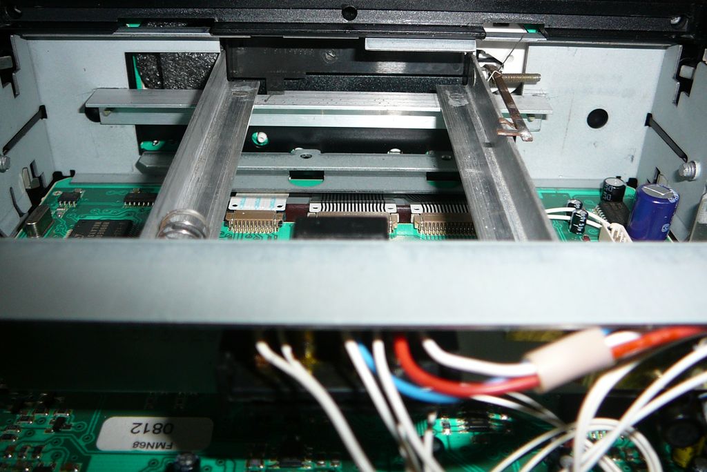 Я выдернул лентопротягу и соорудил внутри направляющие для специальной платформы.