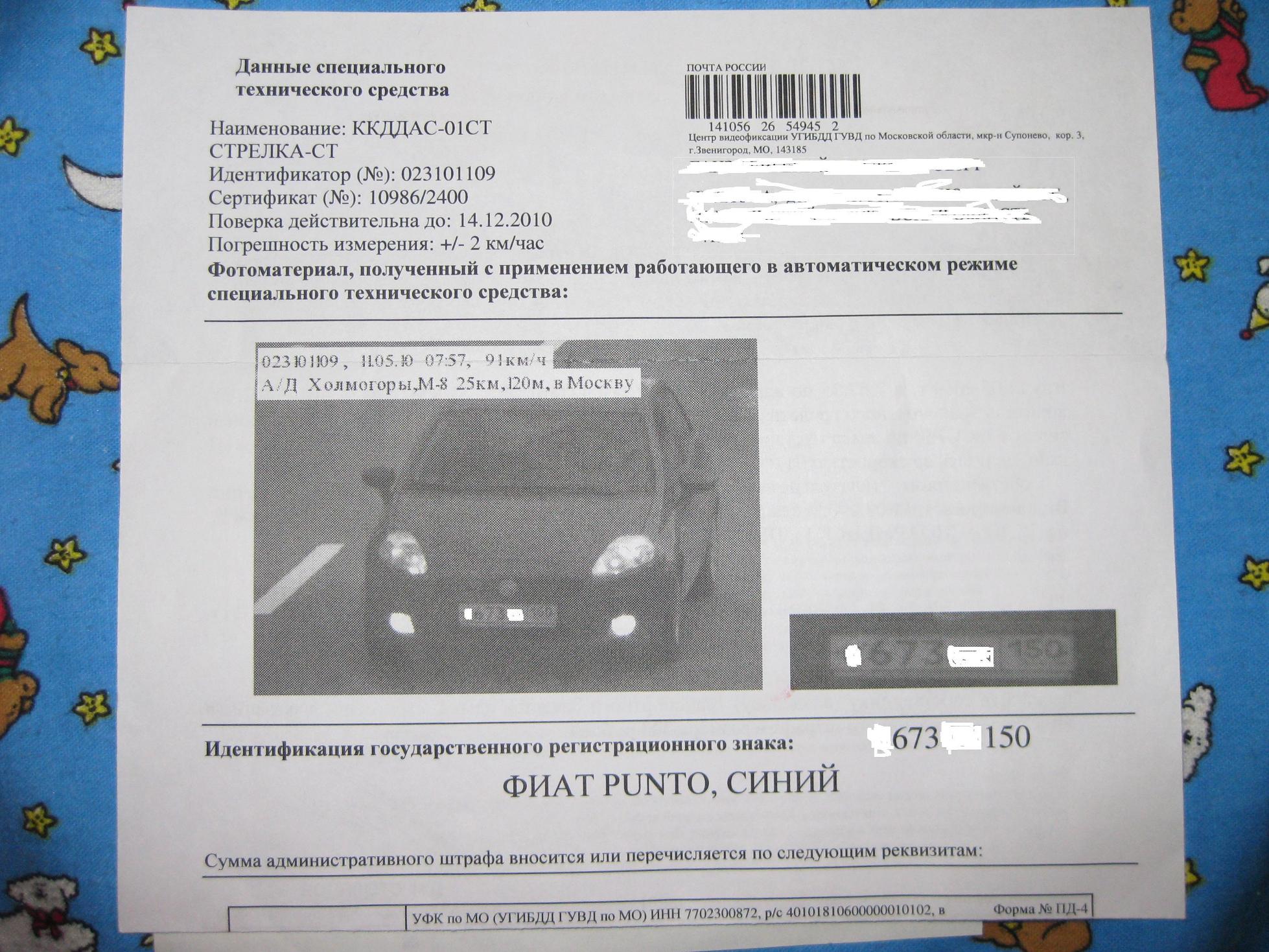 (Не знаю получал кто или нет) Товарищи петербуржцы Витебский 107,виадук,между метро Купчино и КАД.Превышение скорости на 31 км/ч при разрешенной 60.Приговорили к 300-ам рупий. Катаюсь на пунте там раз в месяц и на тее...Странно на мерине по два раза в день там летал и вроде ничего,хотя вторая цифра на номере не читаема.Интересно нарушение было 6 мая,а письмо пришло в середине июня.Бум ждать дальше