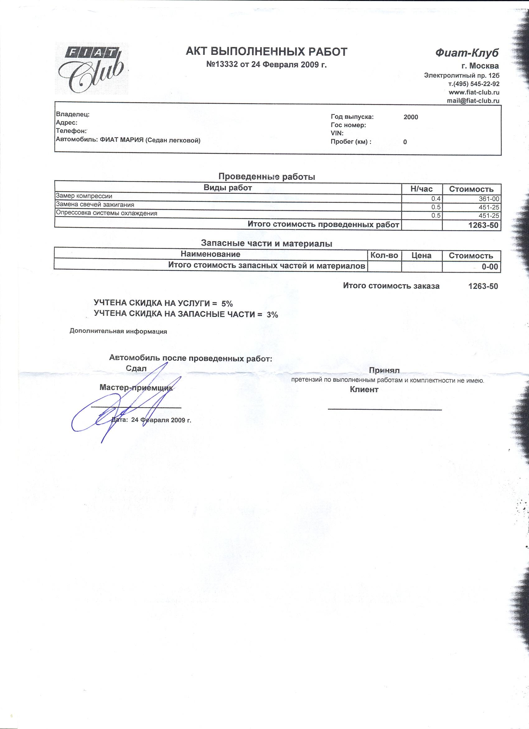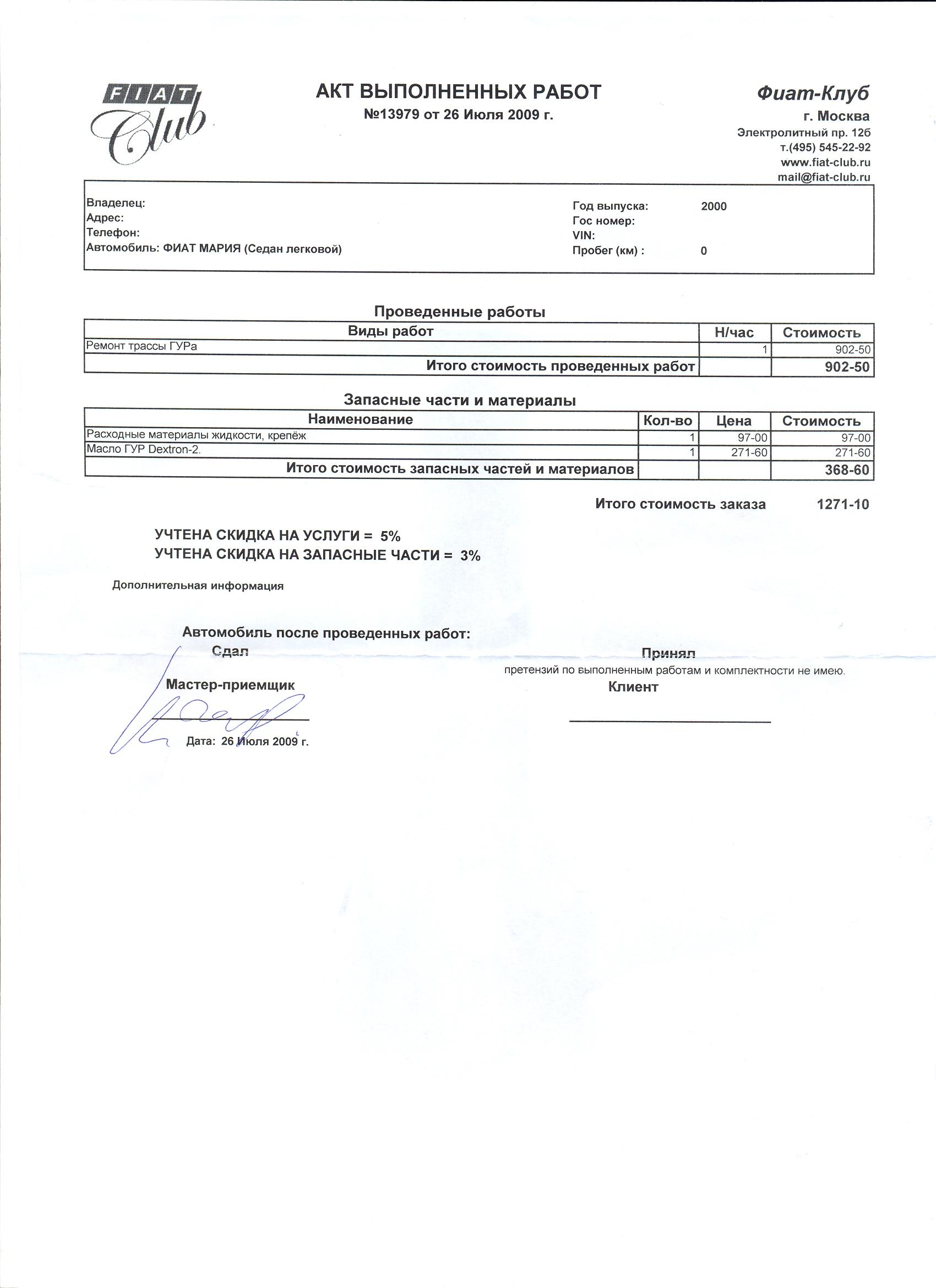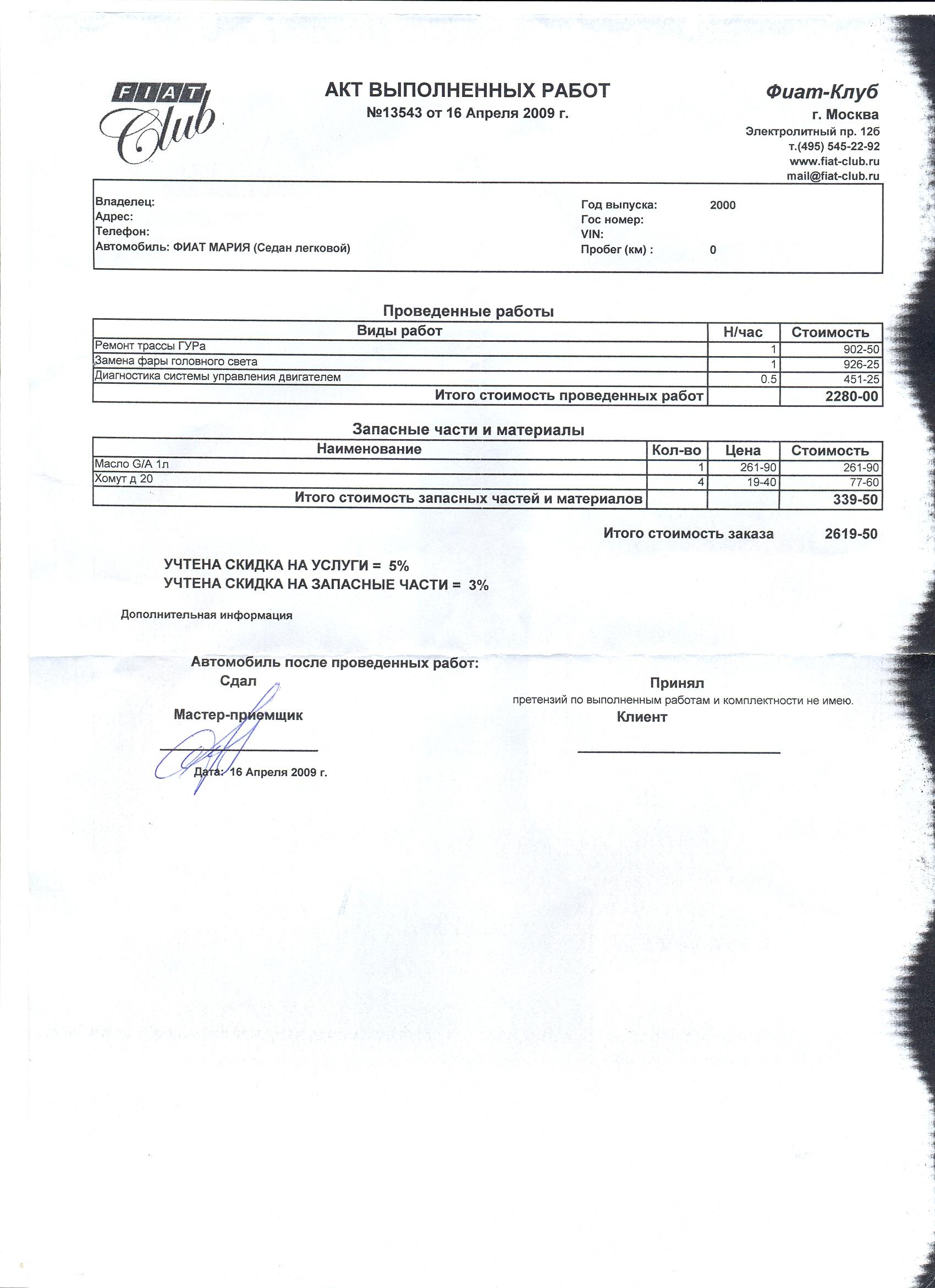 Давай ка мне номер своего авто, и число посещения, выложу на всеобщее обозрение заказ-наряд на работы.