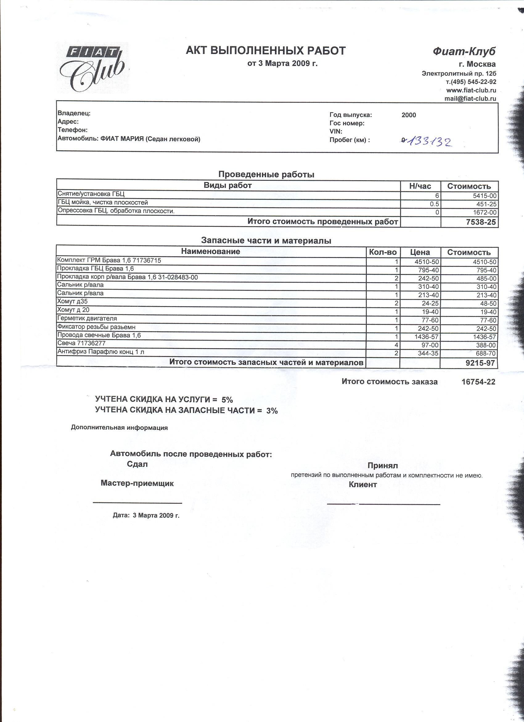 во 1-х, приехал не на замену ГРМ, его мне предложили сделать попутно!!! сделал без вопросов, про опрессовку ГБЦ все учитывал, не ожидал НАЕ** на стоимость запчастей!!!про качество работ я ничего не упоминал, меня устроило я писал на вашем форуме. А то, что не устроило я написал выше!!! И только не говори мне ,что ты мне лично не распечатывал 2 разных чека на запчасти!!! (в одном ГРМ-3990р, в другом - 4500р, и все остальное по мелочам)