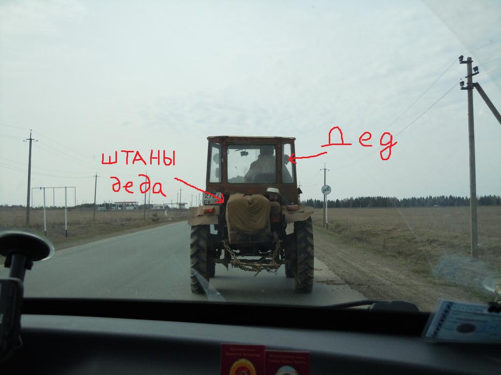 PS: И на последок: фотка, заставляющая улыбнуться. Дедок едет на тракторе, груженый навозом, а сзади на моторе у него сушатся штаны!