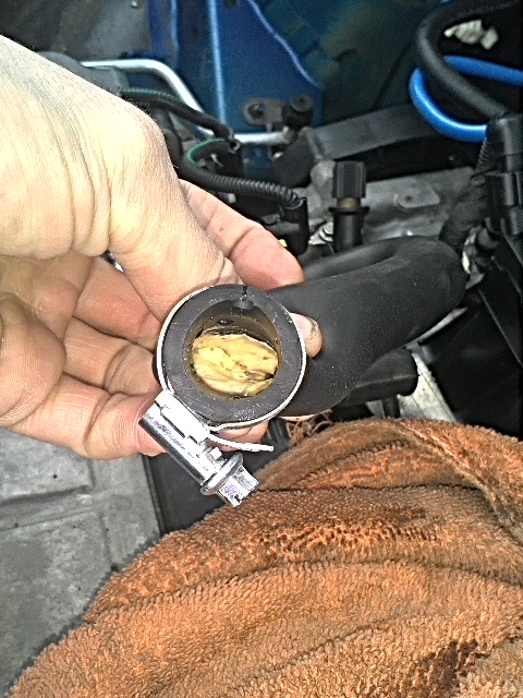 Да потому что масло всегда горячее и влага из нее улетучивается,а с забитого патрубка ей сложно удалится потому как у тебя там сталагниты всякие... Советую снять воздухан с патрубком,все промыть,продуть,заодно заслонку снаружи помой...