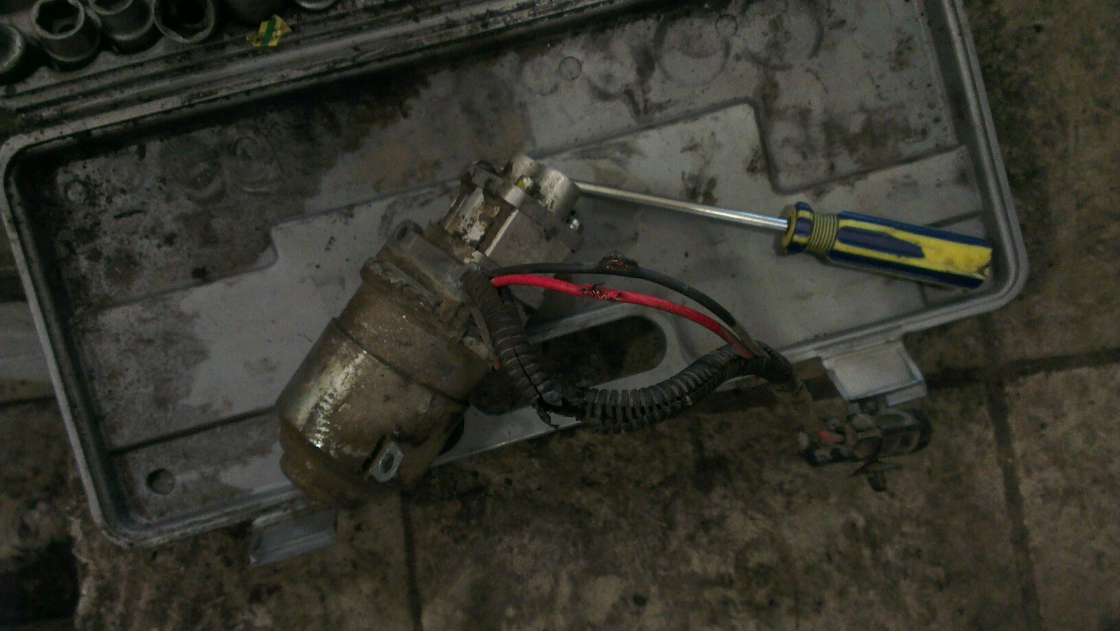 Приветствую форумчане. Вчера решил заняться поиском проблемы, почему не работает насос. При замыкании реле напрямую толку никакого, следствие нет напряжения, Ц-шки (тестера) в тот момент под рукой не было, проверить предохранитель не было возможным. Подумал что насос сгорел, ну все равно нужно будет снимать. Полез на форум за темой о замене насоса большой респект vermin за отчет, все было пошагово и понятно. Поехал к знакомому в бокс с ямой. Все делал по инструкции, давление не сбрасывал, FES показывал его нулевым. Открутил и снял бачок гидропривода, увидел пациента :) . Открутил болты на торкс, разъединил т-образную скобу, а насос не снимается))).