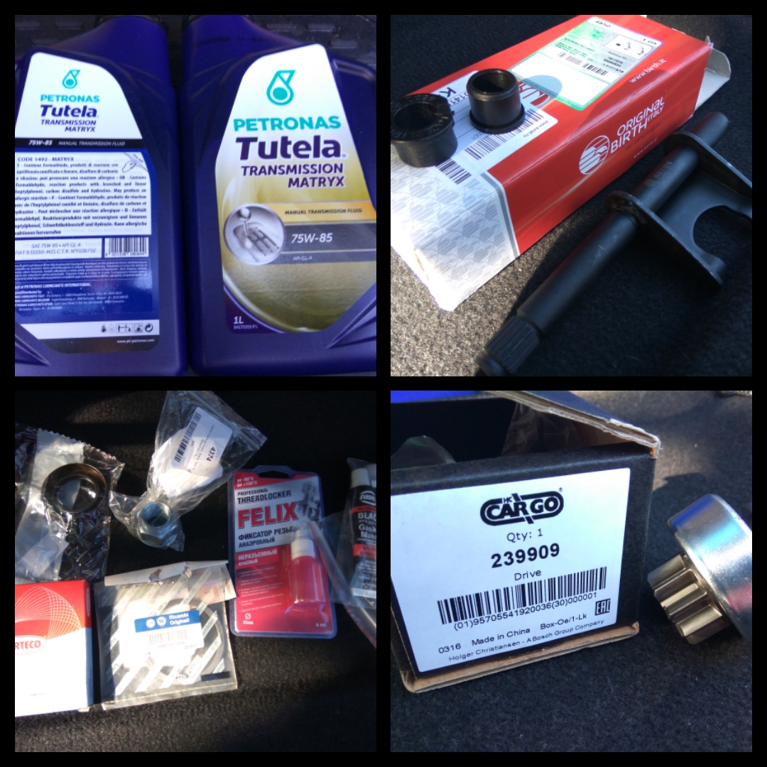 ),гайка ступицы на всякий.Дополнительно куплены формирователь прокладок,фиксатор резьбы,обезжирка,уайт-спирит.Попутно меняется бендикс (буду надеяться,что он нормальный,старый оставлю на память,хотя хз,вроде заводится нормально