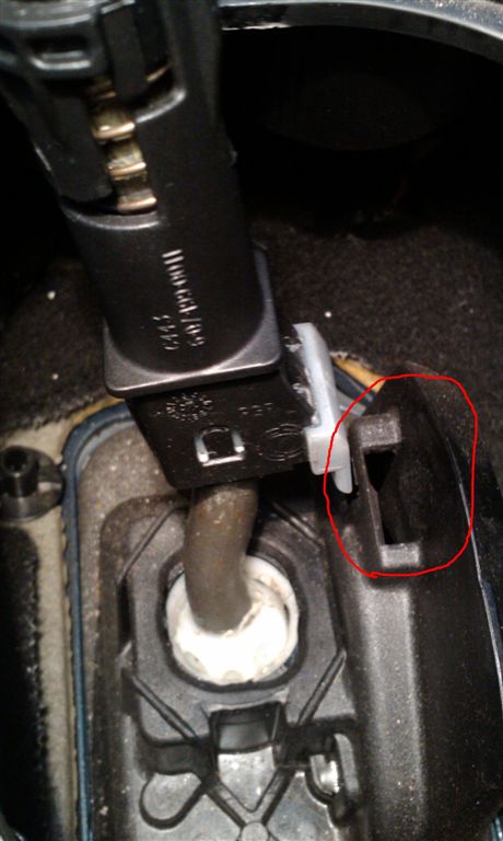 Други, подскажите пожалуйста. при езде и просто стоя на месте, сложно найти 5 передачу. Включение нормальное, но если в право до конца и вперед, то не включить, необходимо немного левее. Такое ощущение, что кулиса КПП, сильно уходит правее чем надо, для включение 5 передачи. Снял кожух кулисы КПП, и наблюдаю такую картину, в корпусе есть прямоугольная дырка (на фото обведена красным), как будто, в нее должно что то вставляться, как раз это что то и будет ограничивать ход кулисы в право. Может кто посмотрит, как у Вас в этом месте есть чего?