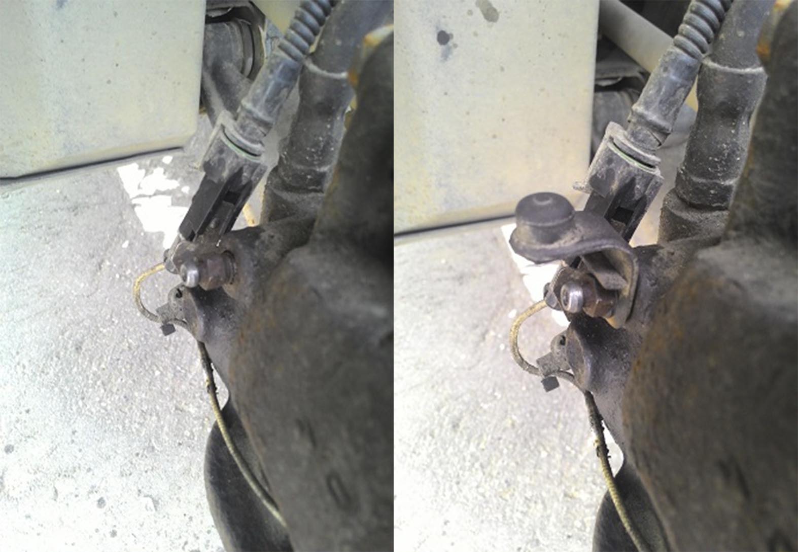 Левый передний,уже почищенный,ослабленный.Пыльник одевать только так.Резьбу покрывать какой-нибудь несмываемой смазкой.