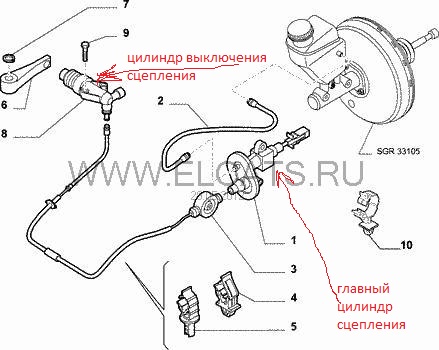 В каталоге Экзиста косяк, там оба цилиндра сцеп имеют название главный, хотя верхний-главный цилиндр сцепления, а нижний- цилиндр выключения сцепления.