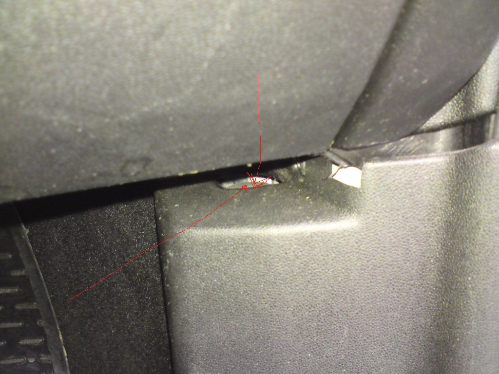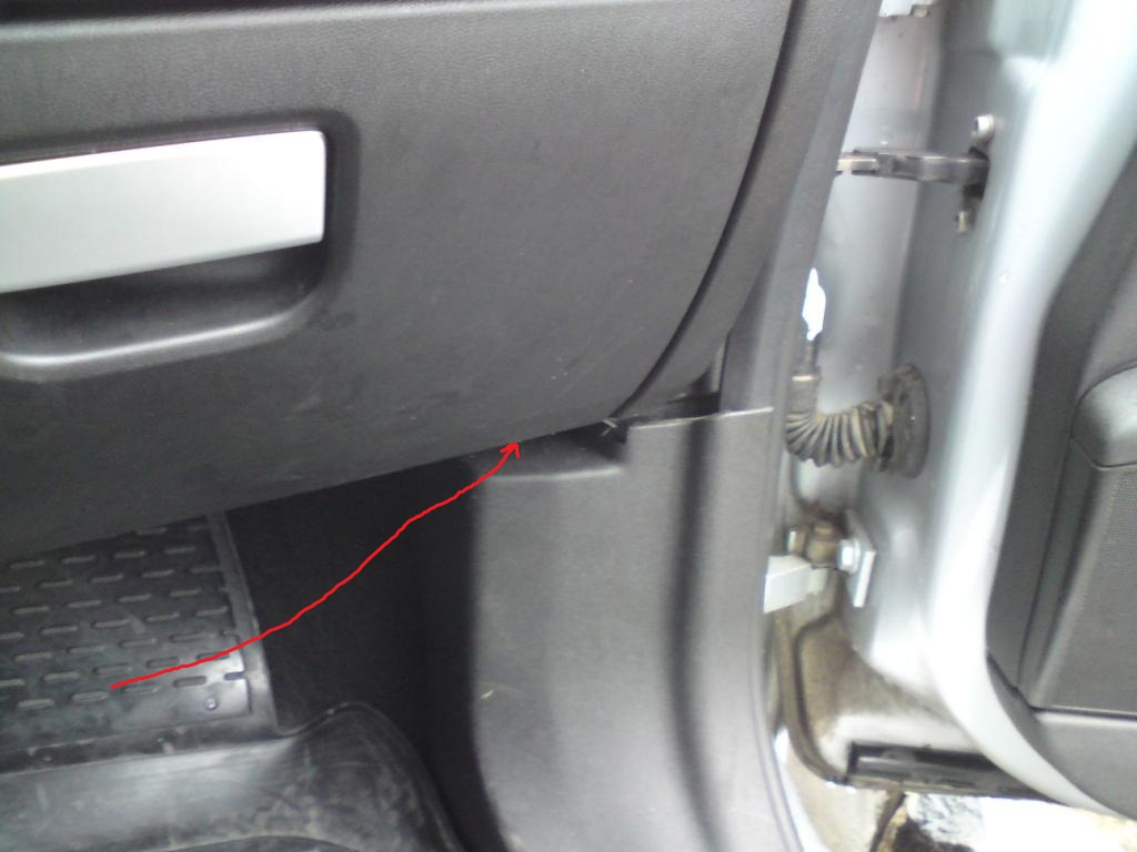 Обшивку чего? :shock: Кнопка находится на декоративной панели сверху, где правая нога пассажира.