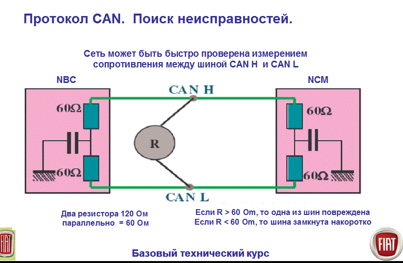 R04 121 это видно даже по картинке если открыть в новом окне ..... а какое значение должно получиться между синими линиями .... просто кан сеть то должно тоже иметь опреденное сопротивление вроде 60 ом соответственно блоки на концах по 120 ом