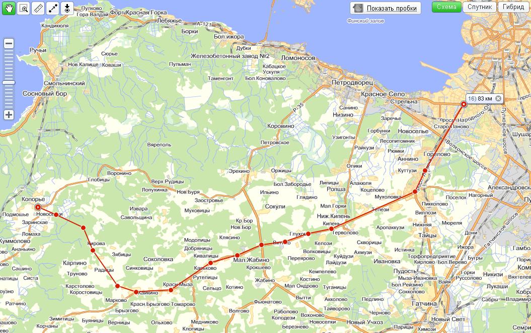 Чёто у тя какая-то карта неточная, от Питера до Бегуниц 44 км, в бегуницах направо повернуть и ещё км 10-15 проехать и будет Копорье.А у тебя на карте этой дороги нету, как и Бегуниц.