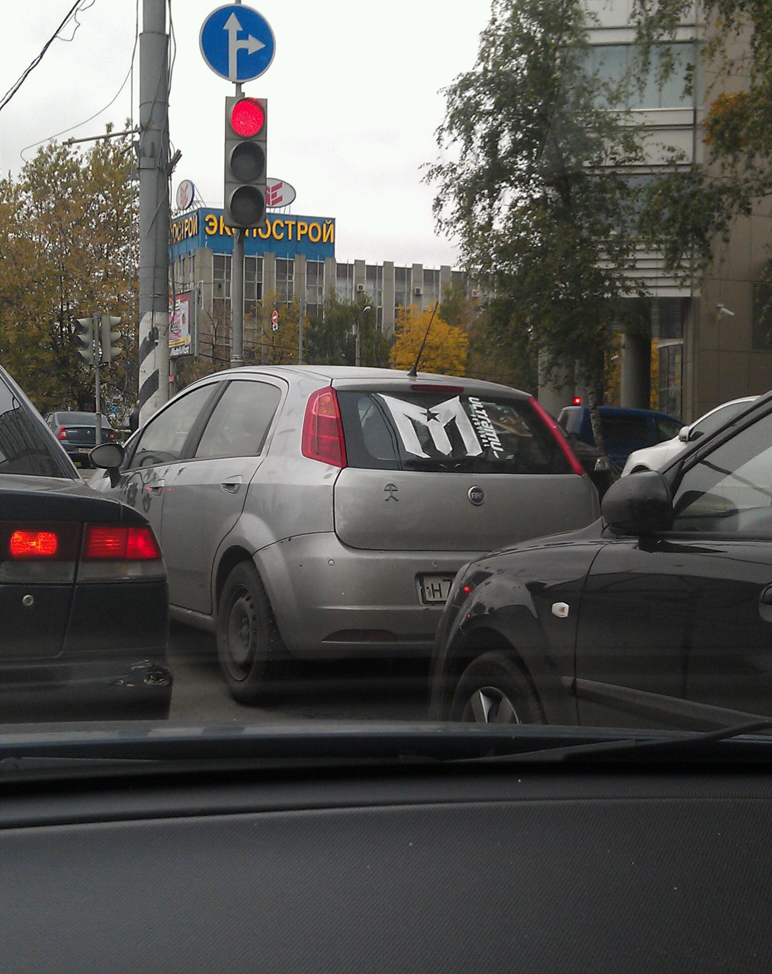 Сегодня в Мытищах чёрной ГП с пятью (5) дверьми))) Без опозновательных знаков клуба, но (!) со странным значком на багажнике: на чёрном фоне,вместо Fiat было написано ФИАТ (да да, как вы прочли - так и написано)))