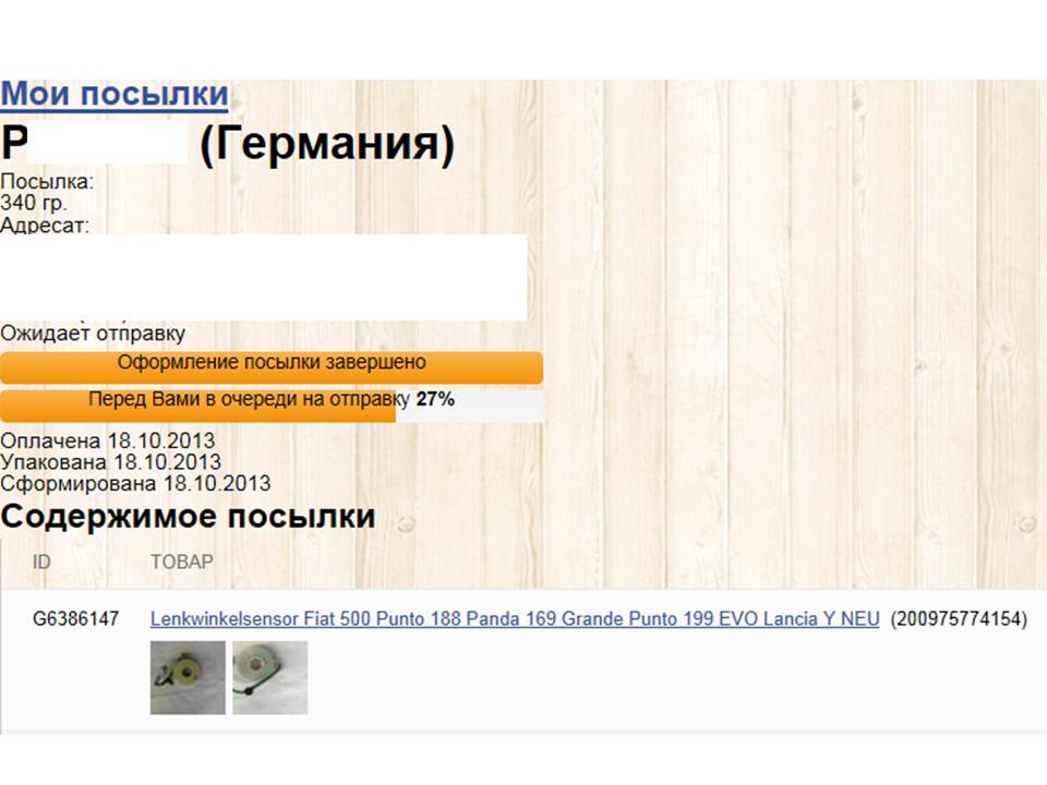 Не помню где, но нашел одну контору: SxxxxZ.RU, зарегился, перевел бабки и сделал заказ, ориентировочно в середине сентября.. У них на сайте было указано, что выкупают товар в течении 2-х дней, далее на склад на упаковку и потом отправка в Россию... Прождал два дня, в итоге не выкуплено... Написал - ответили, что сейчас есть небольшие проблемы по выкупу товара из Германии, якобы банки деньги не перегоняют... Обещали в течении недели выкупить... Ладно, согласился подождать неделю... Через неделю тишина - снова задал вопрос - слезно пообещали, что в течении 5 дней выкупят... Психанул, попросил удалить мой заказ, решил бабки вывести... Океазалось не так-то просто, нужно было отдельно регистрировать кошелек на RBK... Решил не геммороится, и снова создал заказ - фиг с ними, подожду еще 5 дней...