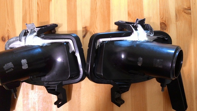 Итак ПТФ в руках,болты удалены,отмываем ее,берем канцелярский (!!!) новый нож,прорезаем по шву между корпусом и стеклом,отгибаем стекло,вставляем в щель и аккуратно отделяем стекло,никаких спешных/резких движений. Фотки стекла и корпуса выше.