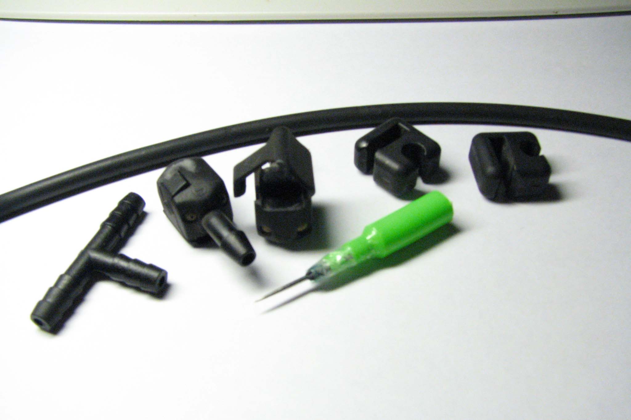 Ну вот...осталось только поставить.Проблема была в подборе этих самых писалок.В идеале хотелось от спринтера,там писалка трехструйная,каждая струя регулируется,брызгает поверх щетки,НО на рынке оригинал 900 руб за штучку,самое главное,что если в сборе с поводком,то 1500