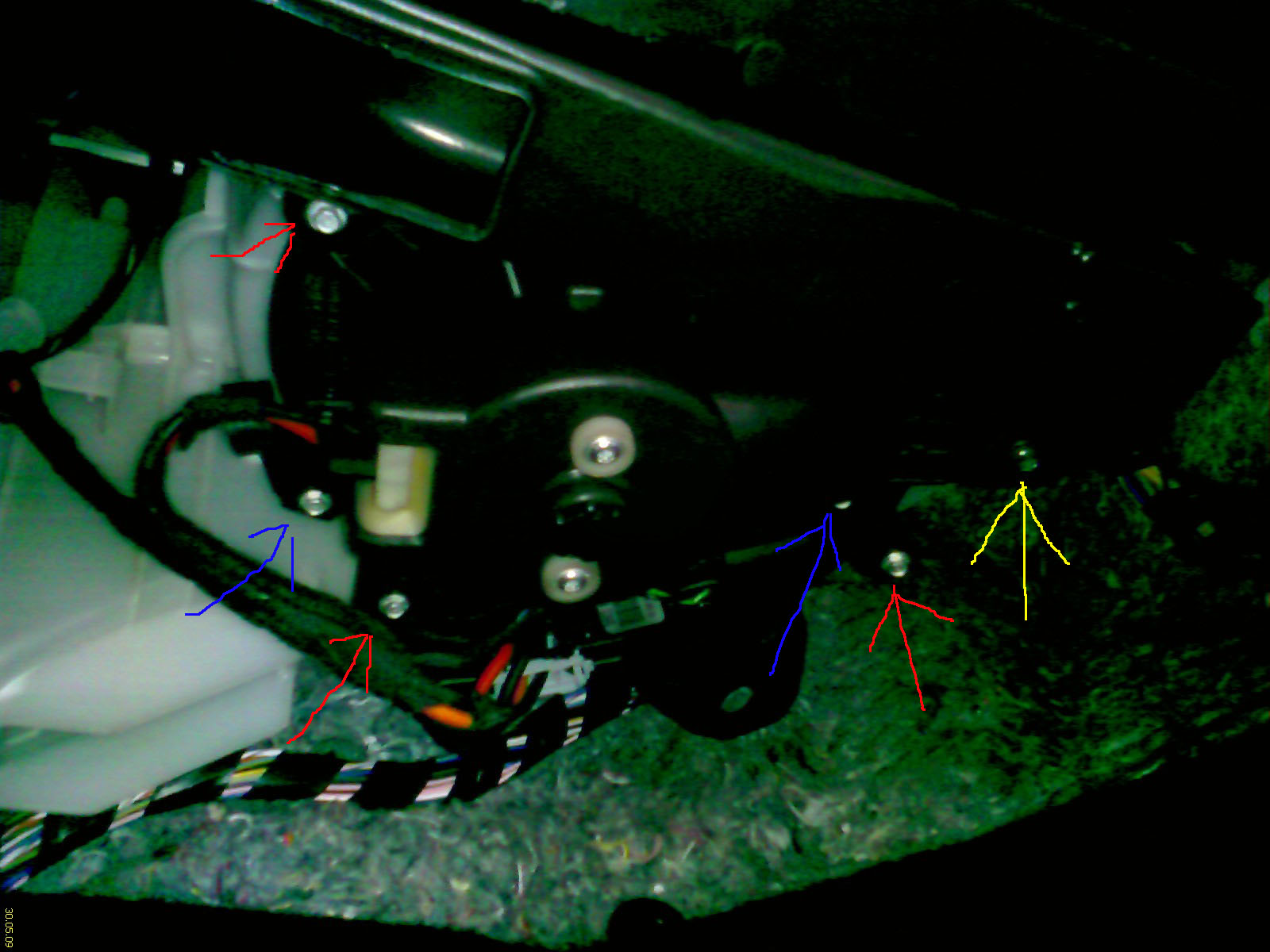 Отключаем 4 разъема.Откручиваем воздуховод(звездочка 25).Вынимаем его.Сам движитель печки висит на трех саморезов (головка 5.5) Красные стрелки.Откручиваем их.