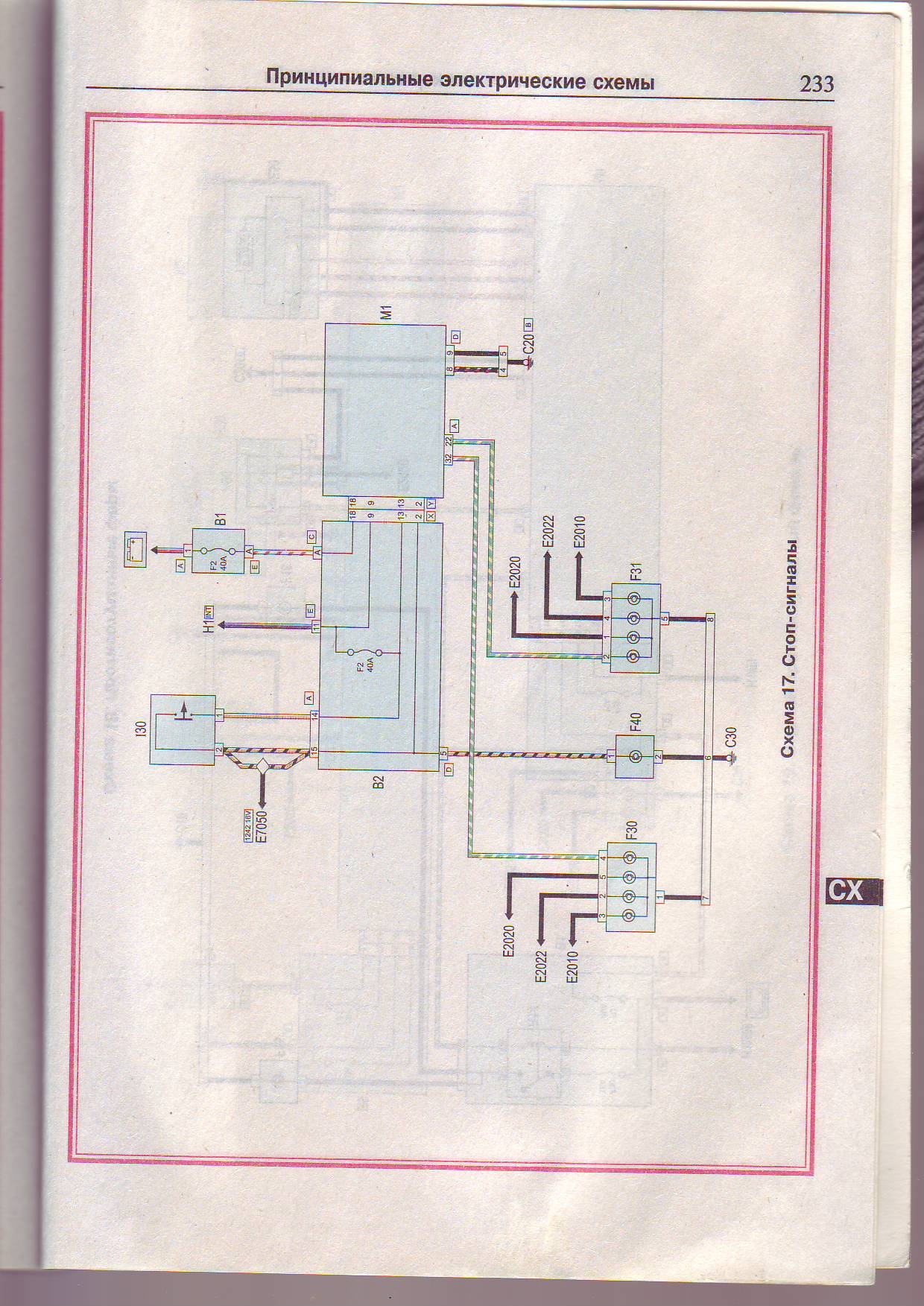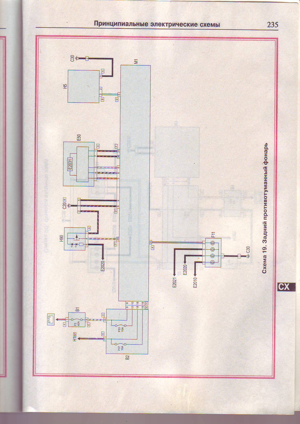 Могу сразу сказать, что схемы в руководстве на английском языке более правильные. Видимо наши просто в файн ридере распозновали. Сам с этим столкнулся при поиске контакта на противотуманки в блоке управления освещением. В представленном руководстве он под одним номером, которого даже на плате нет, а в англ. варианте под другим и есть. Теперь ПТФ вкл. как и все остальные импульной кнопкой на панеле, рядом с задней ПТФ.