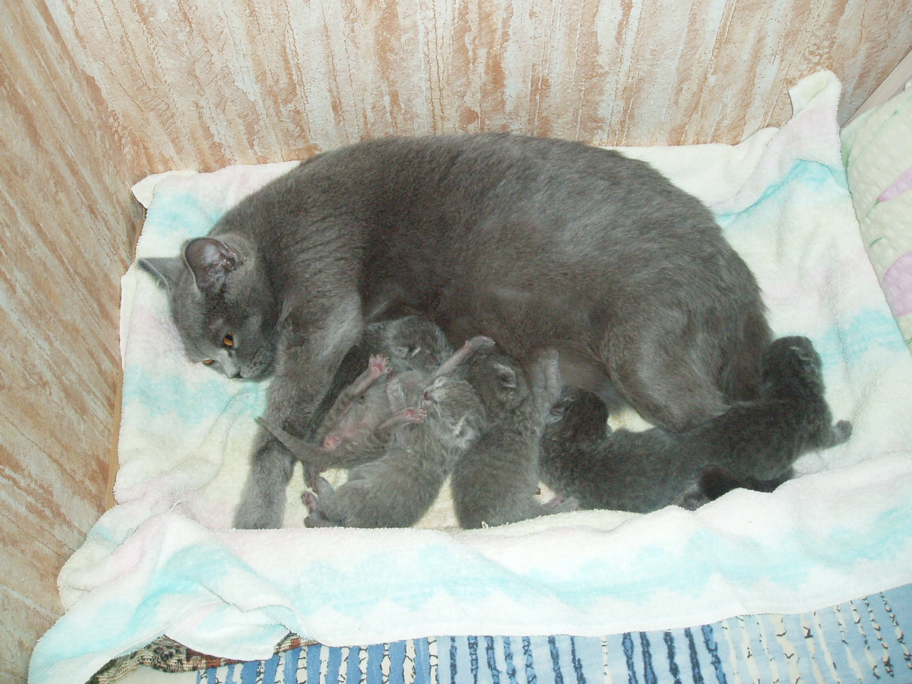 мама на фото, а папа тоже Бритиш (и такого же цвета), только вислоухий...детки соответственно, вперемежку -кто вислоухий, кто остроухий.. :D